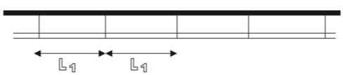 Maksymalny odcinek (L1) dozwolony pomiędzy obejmami przedstawiono poniżej: