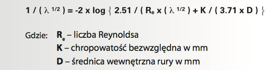 Możemy również, na podstawie różnych wzorów, obliczyć współczynnik oporu. Najczęściej wykorzystywanym jest formuła Colebrook’a: