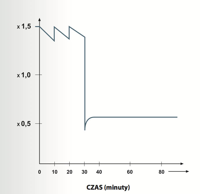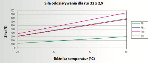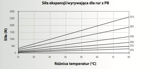 Na poniższym wykresie możemy określić siłę oddziaływania rurociągu pomiędzy dwoma punktami mocowania przy zmianach temperaturowych.
