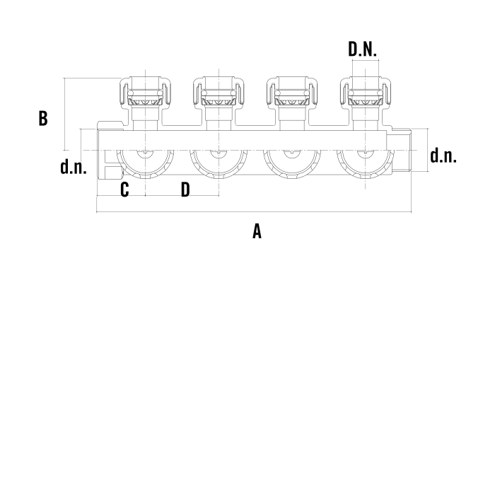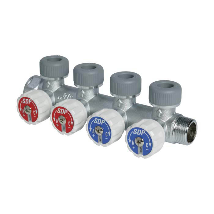 Rozdzielacz mosiężny 4-portowy z zaworami 90°